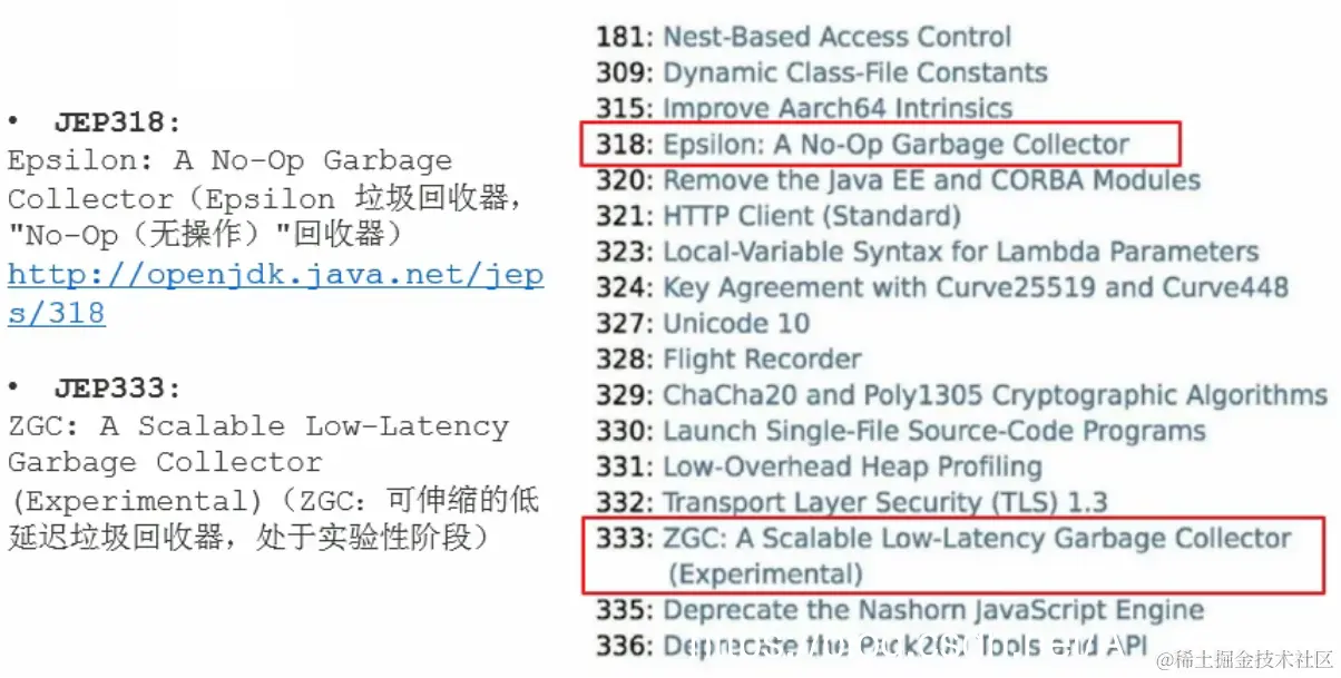 7.2018年9月,JDK11发布。引入Epsilon垃圾回收器,又被称为“No-Op(无操作)”回收器。同时,引入ZGC:可伸缩的低延迟垃圾回收器(Experimental)。