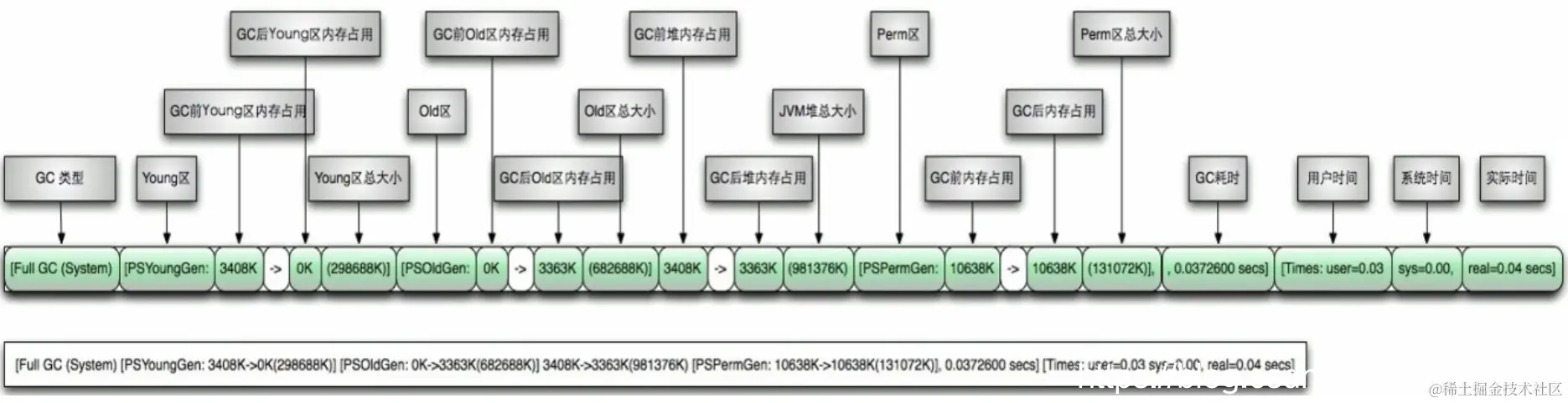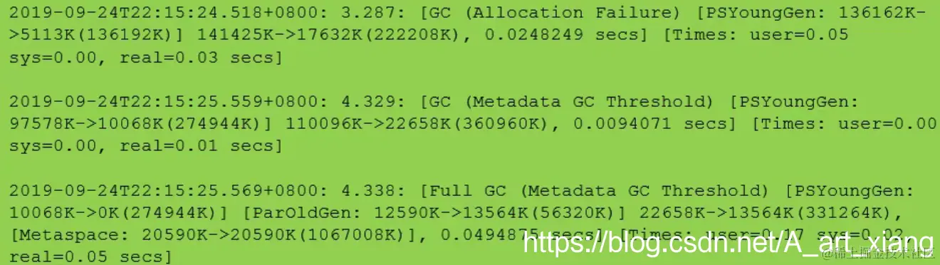 1.“[GC”和“[Full GC”说明了这次垃圾收集的停顿类型,如果有“Full”则说明GC发生了“Stop The World”。