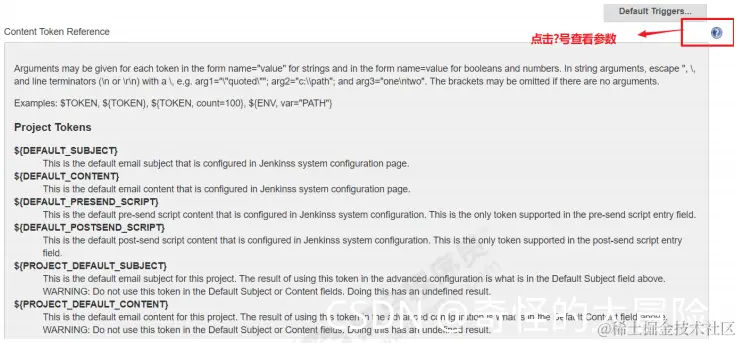 系统设置->Extended E-mail Notification->Content Token Reference,点击旁边的?号