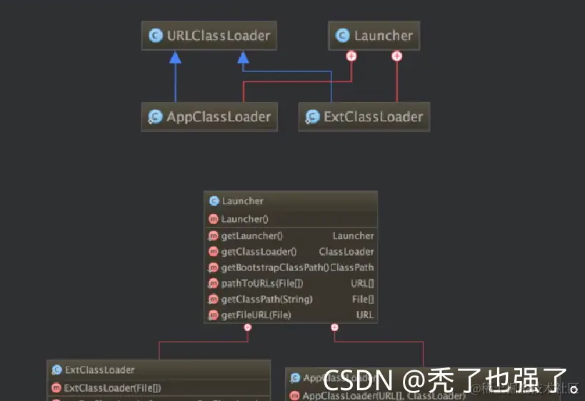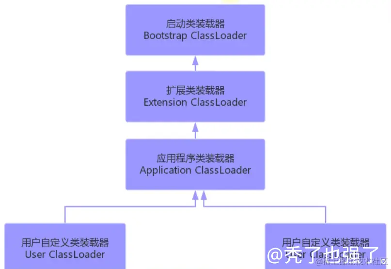 · 不同类加载器看似是继承(Inheritance)关系,实际上是包含关系。在下层加载器中,包含着上层加载器的引用。