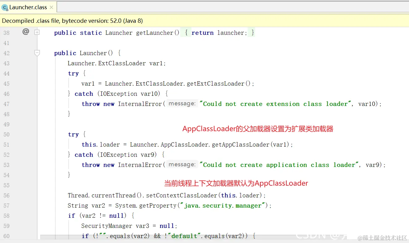 · 加载扩展类和应用程序类加载器,并指定为他们的父类加载器。