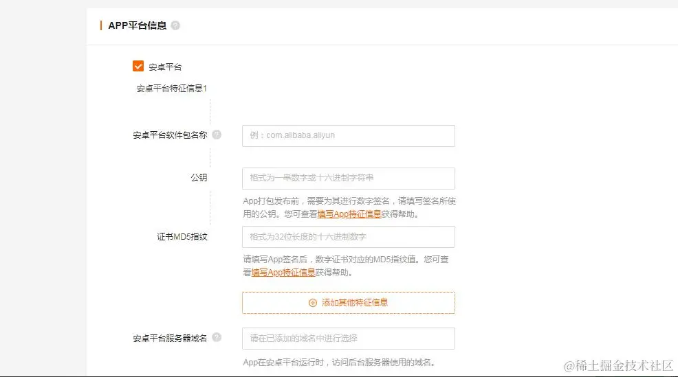 如图,根据页面提示,输入安卓APP信息比如: