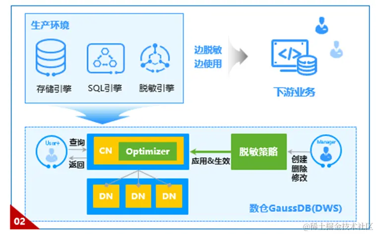 良好的底座协同。脱敏引擎贯穿于数仓底座的诸多环节,基于预置脱敏策略,参与SQL引擎的解析、重写、优化与执行。脱敏过程用户无感知。