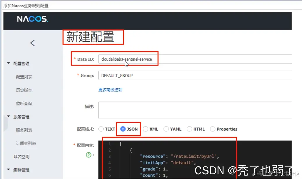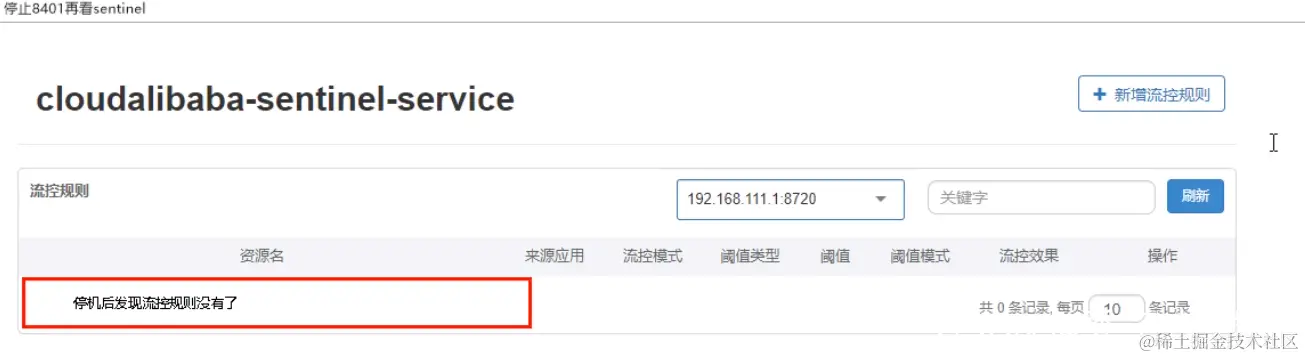 服务重启后,sentinel在管理端的配置就会重置,所以需要持久化。