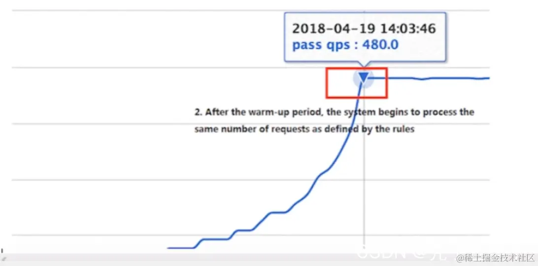 Warm Up(RuleConstant.CONTROL_BEHAVIOR_WARM_UP)方式,即预热/冷启动方式。当系统长期处于低水位的情况下,当流量突然增加时,直接把系统拉升到高水位可能瞬间把系统压垮。通过“冷启动”,让通过的流量缓慢增加,在一定时间内逐渐增加到阈值上限,给冷系统一个预热的时间,避免冷系统被压垮。