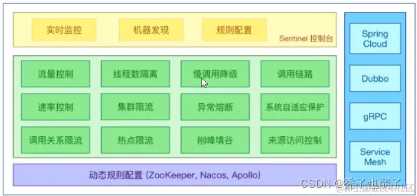 随着微服务的流行,服务和服务之间的稳定性变得越来越重要。Sentinel以流量为切入点,从流量控制、熔断降级、系统负载保护等多个维度保护服务的稳定性。