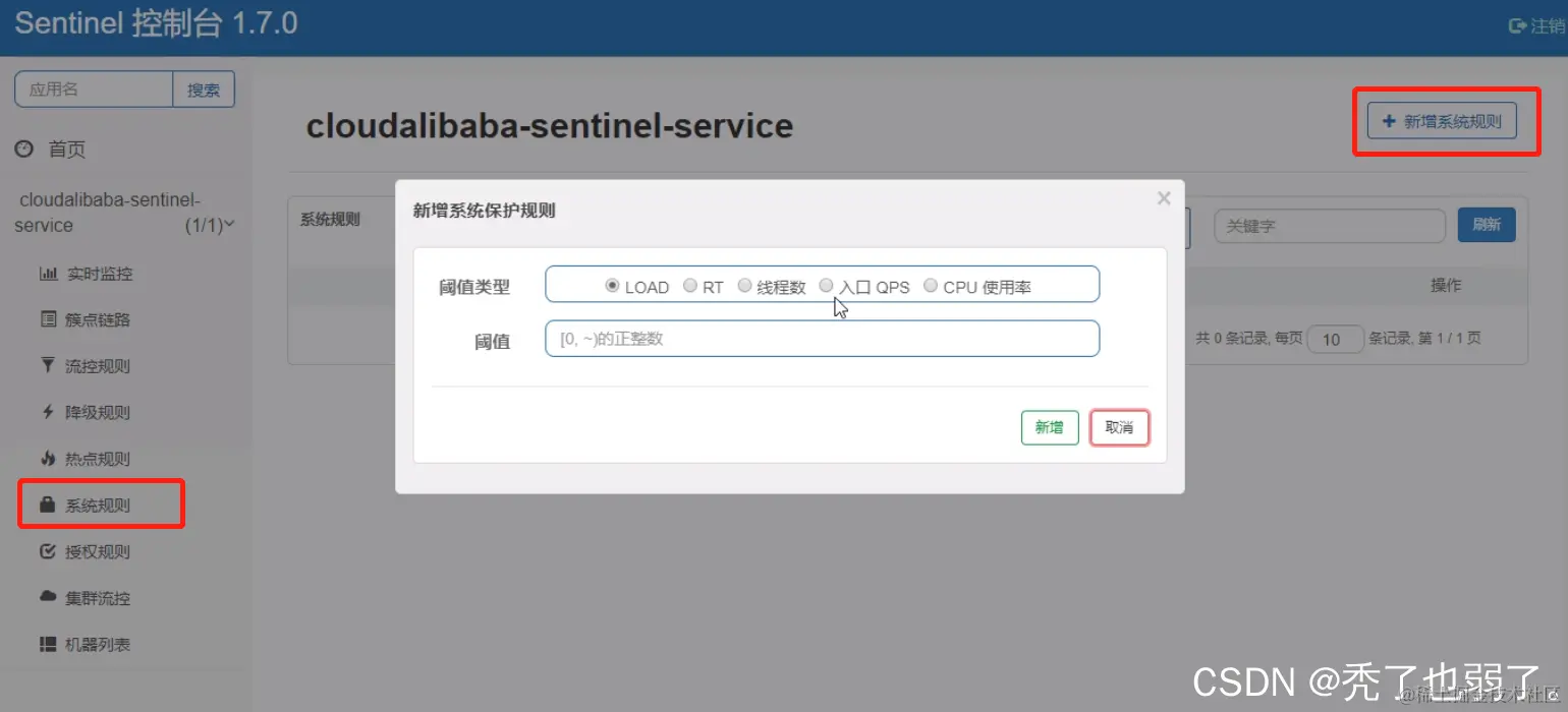 系统保护规则是从应用级别的入口流量进行控制,从单台及其的load、CPU使用率、平均RT、入口QPS和并发线程数等几个维度监控应用指标,让系统尽可能跑在最大吞吐量的同时保证系统整体的稳定性。