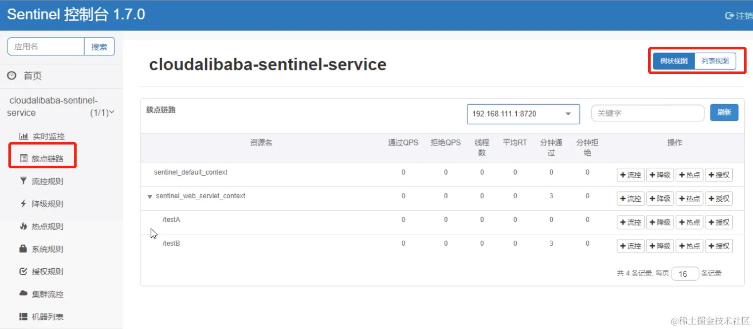 sentinel同时提供实时的监控功能。您可以在控制台中看到接入应用的单台机器秒级数据,甚至500台以下规模的集群的汇总运行情况。