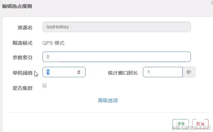 QPS(每秒钟的请求数量):当调用该api的QPS达到阈值的时候,进行限流。