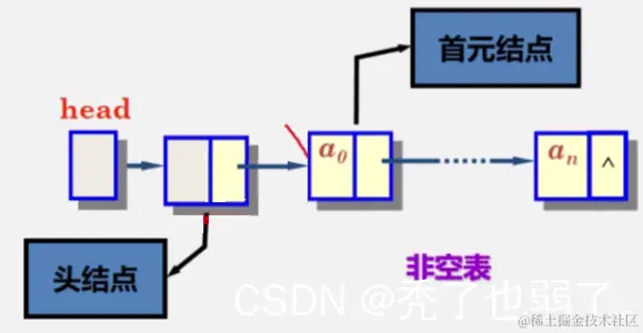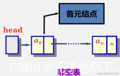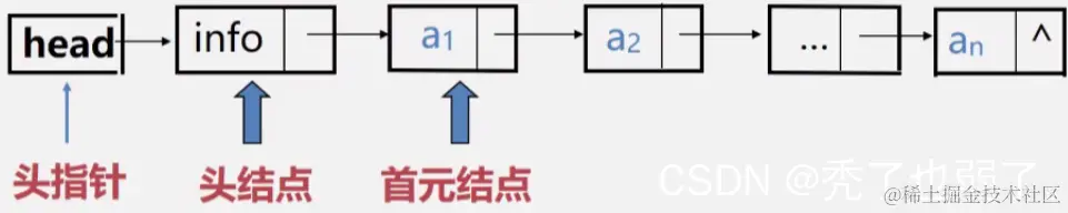 首元结点:是指链表中存储第一个数据元素a1的结点。