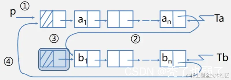 · 让最后一个结点的后继指针指向头结点。