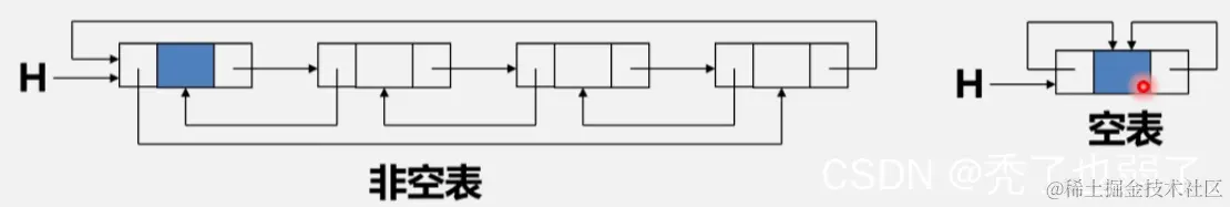和单链表的循环表类似,双向链表也可以有循环表