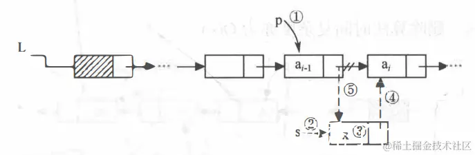 线性表的插入操作是指在表的第i个位置插入一个新的数据元素 e, 使长度为 n 的线性表变成长度为n+1的线性表。
