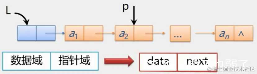 结点只有一个指针域的链表,称为单链表或线性链表。