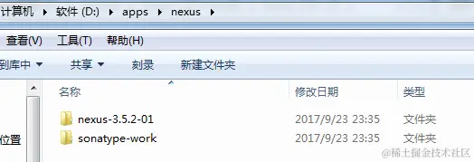 第一步,跟随着说明文档,看看下载nexus下来之后,有两个目录