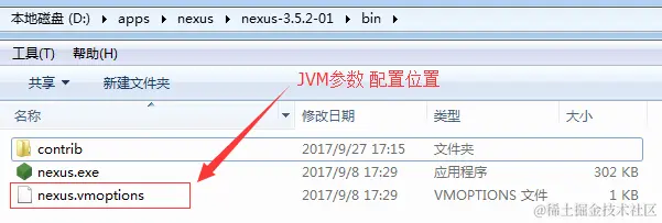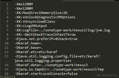 如果你想配置nexus的应用在本地启动的JVM参数,可以在nexus.vmoptions