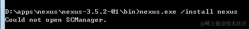 在windows7上安装nexus为系统服务时,报错:could not open SCManager