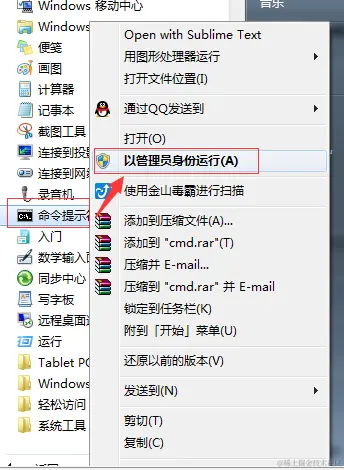 直接以管理员身份运行这个命令提示符,然后安装服务。