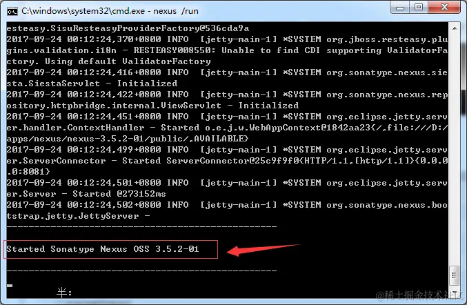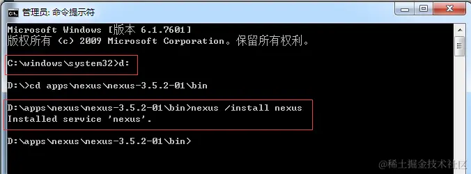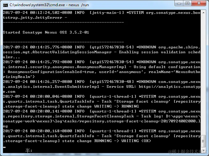 接下来,我们重新打开一个窗口,去将nexus加入系统服务