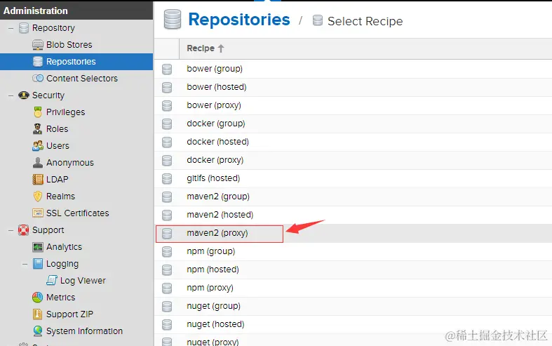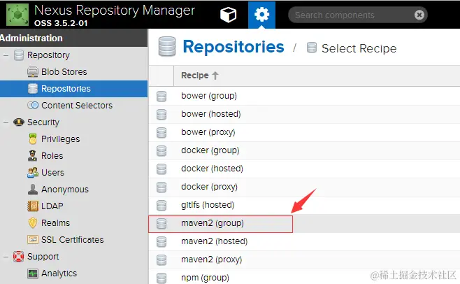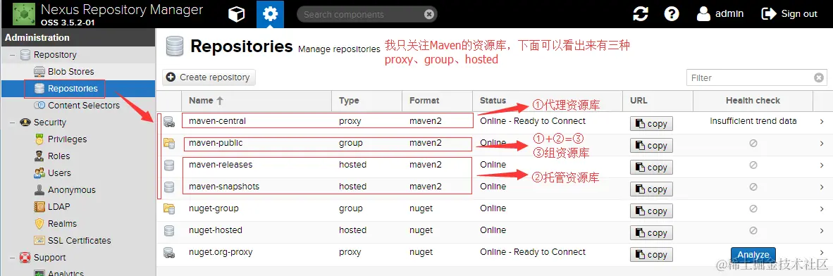 由于现在使用的nexus3,所以在nexus应用上资源库初始化目录和nexus2有很大的不同,但是类型都是一样的。