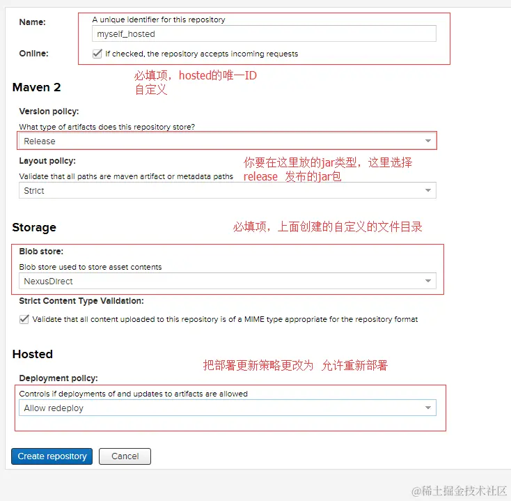 ③第三步,创建hosted repository 托管资源库