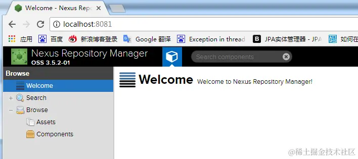初次启动之后,你可以在浏览器上访问nexus这个maven管理器