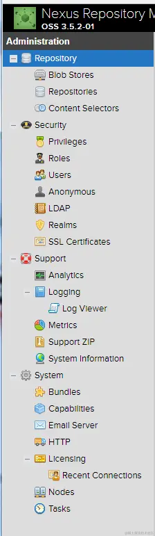 在nexus安装并启动之后,我大概的把整个nexus的官方说明文档走了一遍,主要就是介绍了左侧菜单中的各个功能模块。help.sonatype.com/display/NXR…