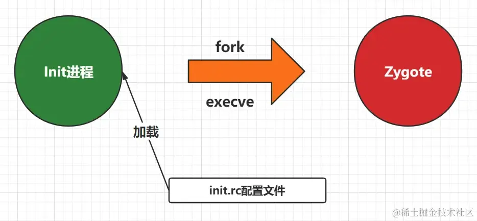 - 系统启动时,Linux内核会加载init进程,init进程是Android系统的第一个用户空间进程。