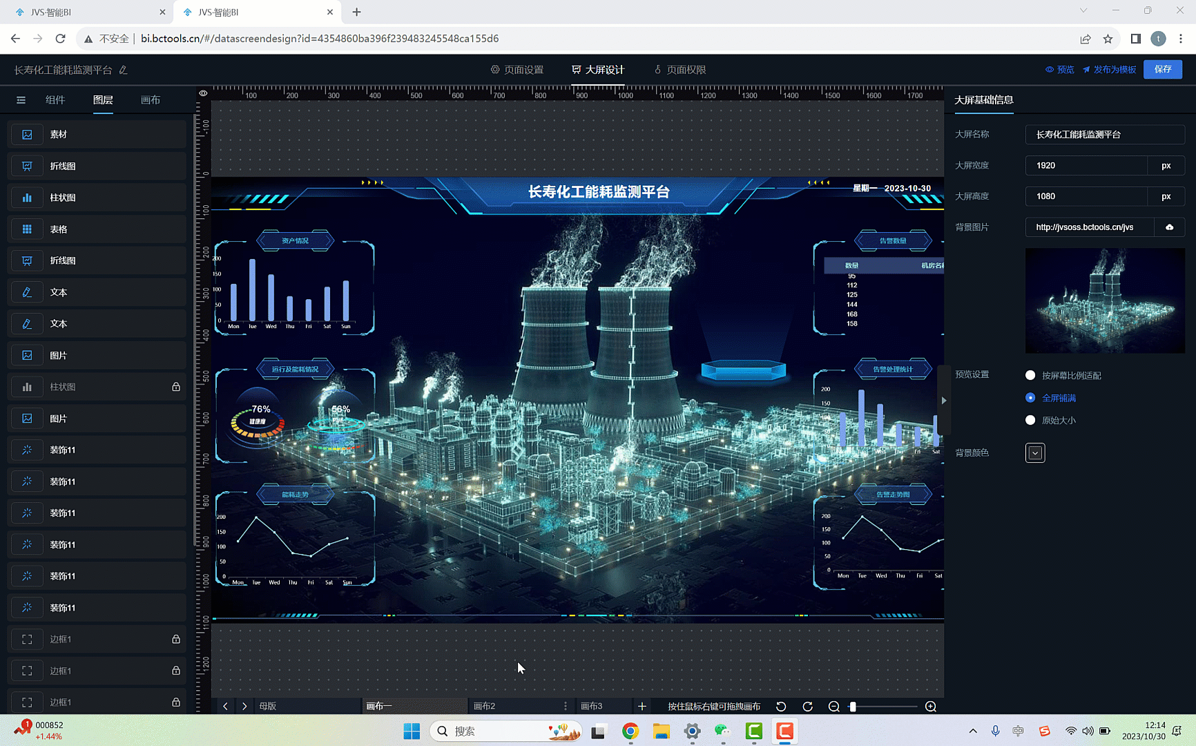 2.大屏设计器底部菜单栏新增母版选择功能;