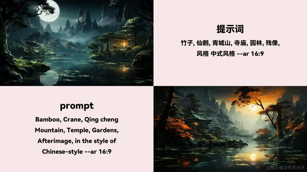 Promptport也专门收集了有关中国风的元素,中国建筑、中国文物、中国菜、中国各朝代的风格、中国传统节日的元素等等,还有各种象征着中国的元素,比如中国的东方龙、窗花、灯笼、剪纸,还有更丰富的中国著名风景区。
