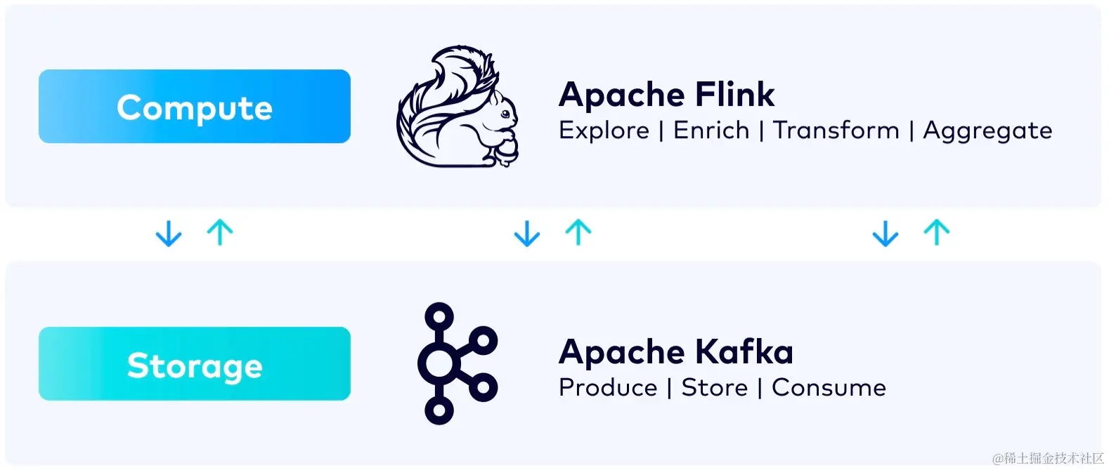 需注意,Flink本身不存储任何数据,它对其他地方存储的数据进行操作。可以把Flink视为Kafka的计算层,为实时应用和流水线提供支持,而Kafka是流数据的基础存储层。
