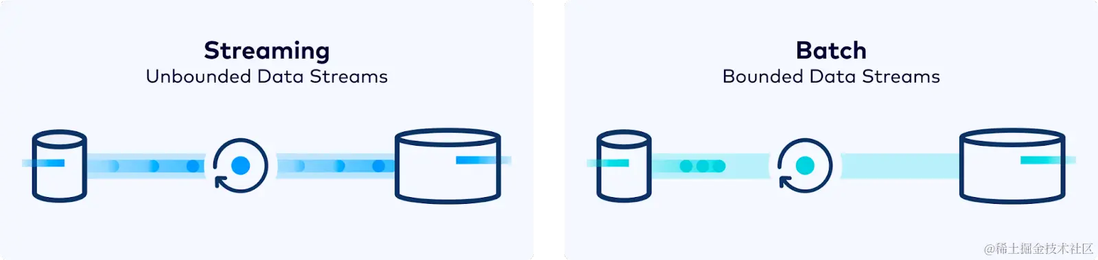 Apache Flink统一了流处理和批处理,因为其主要API(SQL、Table API和DataStream API)同时支持有界数据集和无界数据流。具体来说,你可以根据正在处理的数据性质,以批处理或流处理模式运行相同程序。你甚至可以让系统为你选择处理模式。