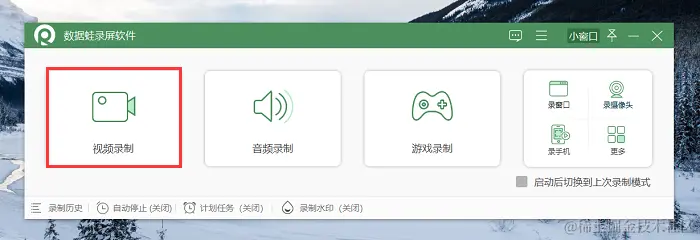 步骤1:打开数据蛙录屏软件,它支持多种录制模式(包括摄像头、游戏、视频等),录制微课推荐使用 “视频录制” 模式。