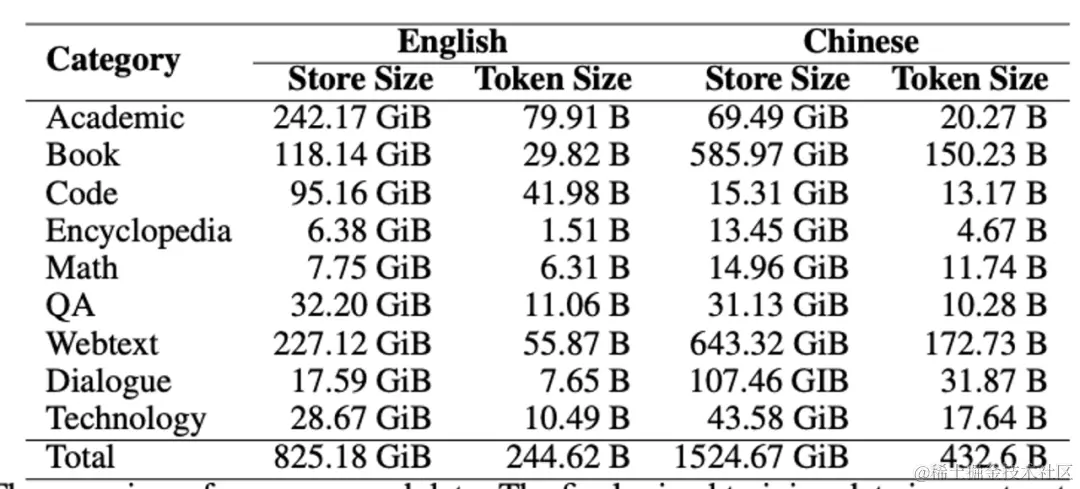 我们使用英文和中文两种语言的训练数据。英文数据源自Pile数据集,经过进一步处理。中文数据包括来自Wudao、CBooks等开源训练数据,以及我们从互联网上爬取的数据。为确保数据质量,我们采用了严格的数据处理方法,特别是对于从网络爬取的数据。