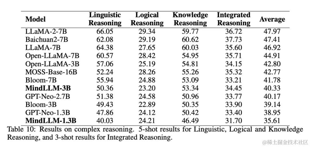 对于轻量级模型,在应用于下游任务时,只需要存在相关的能力上展现出出色的表现即可。因此,我们本部分想要探究MindLLMs和其他轻量级LLM在(≤7B)具体能力上的表现和影响因素。