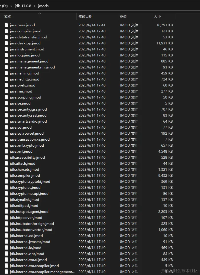 JDK17将其拆成一个一个jmod: