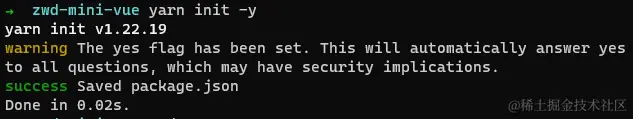 进入文件夹,执行yarn init -y,创建一个 package.json 文件