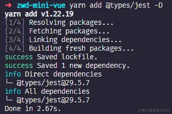 解决 index.spec.ts 中 ts 不识别 jest 问题,安装@types/jest, 执行yarn add @types/jest -D