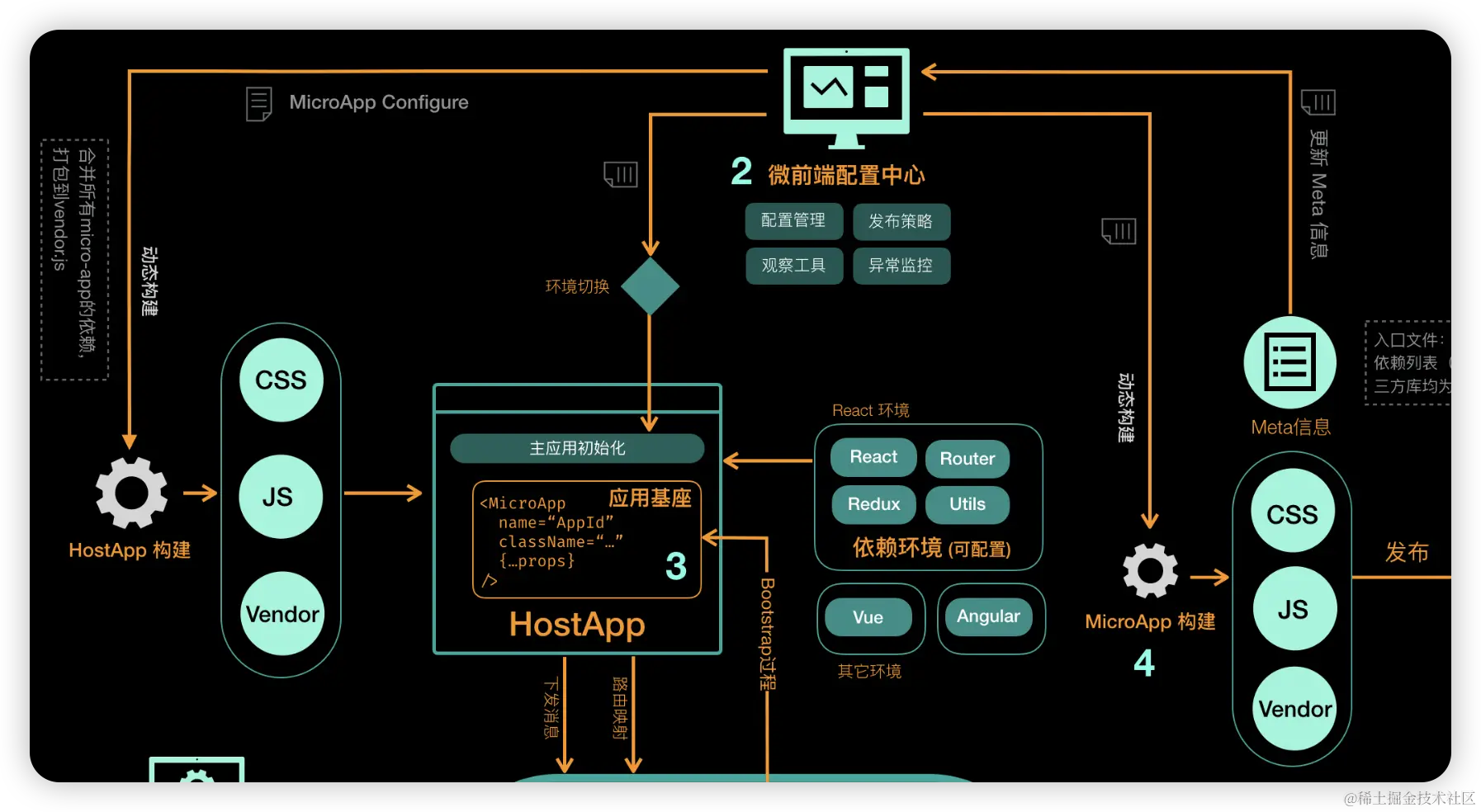 micro-app 的核心功能在 CustomElement 基础上进行构建,CustomElement 用于创建自定义标签,并提供了元素的渲染、卸载、属性修改等钩子函数,通过钩子函数获知微应用的渲染时机,并将自定义标签作为容器,微应用的所有元素和样式作用域都无法逃离容器边界,从而形成一个封闭的环境。