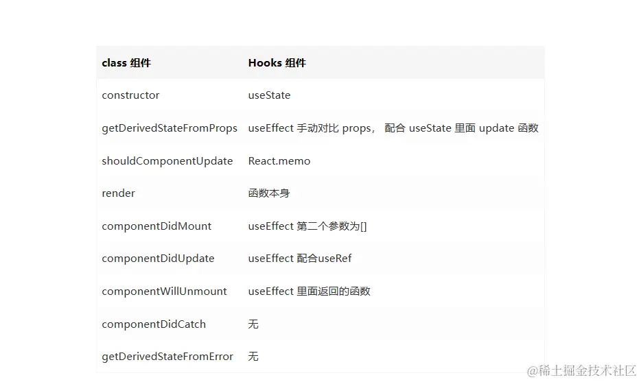 注意:**在react16.8版本中添加了hooks,**使得我们可以在函数组件中使用useState钩子去管理state,使用useEffect钩子去使用生命周期函数。因此,2、3两点就不是它们的区别点。从这个改版中我们可以看出作者更加看重函数组件,而且react团队曾提及到在react之后的版本将会对函数组件的性能方面进行提升。