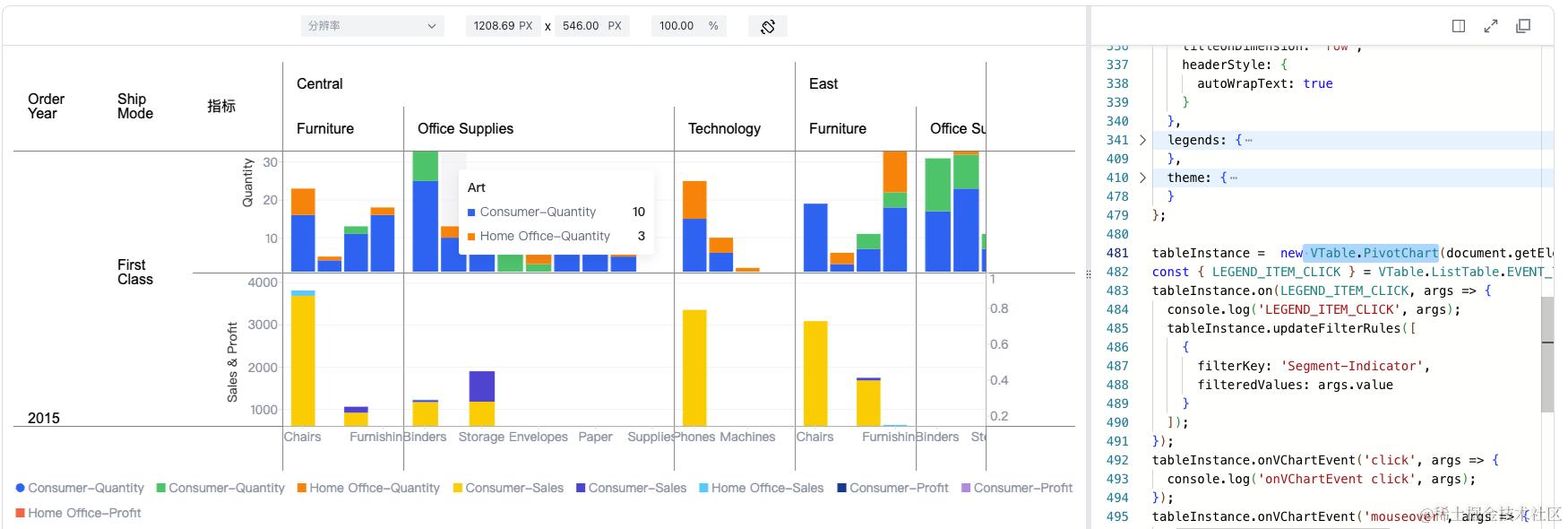 VTable 可以无缝集成VChart,将 VChart 的图表类型作为单元格的元素类型进行渲染,极大的提升 了表格的可视化表现力。同时,也为解决单页面多图表渲染的性能问题提供了新的解决方案。