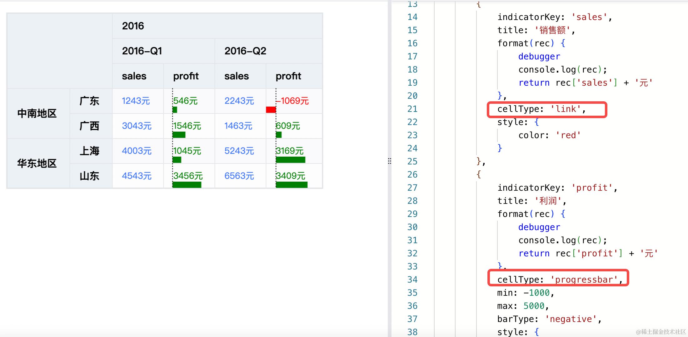 配置方式: 为指标设置不同的cellType。具体示例代码:codesandbox.io/s/vtable-pi…