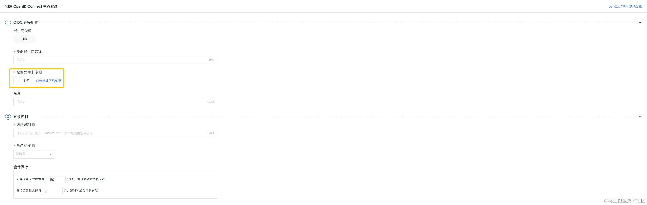 您可以直接在「用户SSO」中创建 OIDC 身份提供商,对于 Oauth2.0 和非标准的 OIDC 协议,观测云提供了文件配置模板,下载模板按规范填写配置并上传即可完成认证。
