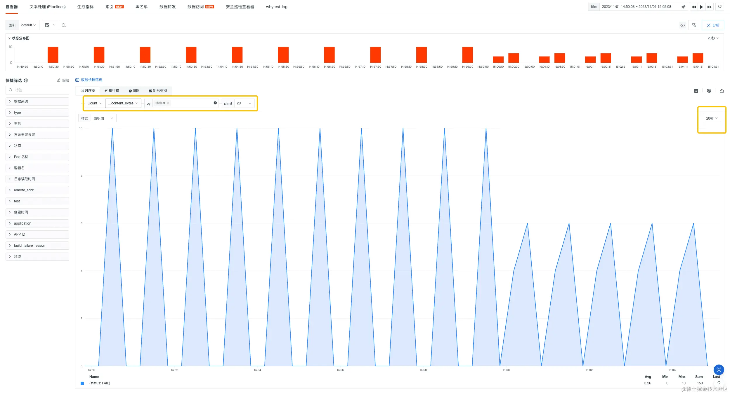 - 在查看器中点击「分析」按钮可立即进入分析模式,原有在分析模式下只能统计数量,现在支持基于数据自由地进行聚合查询,并以图表形式展示分析。