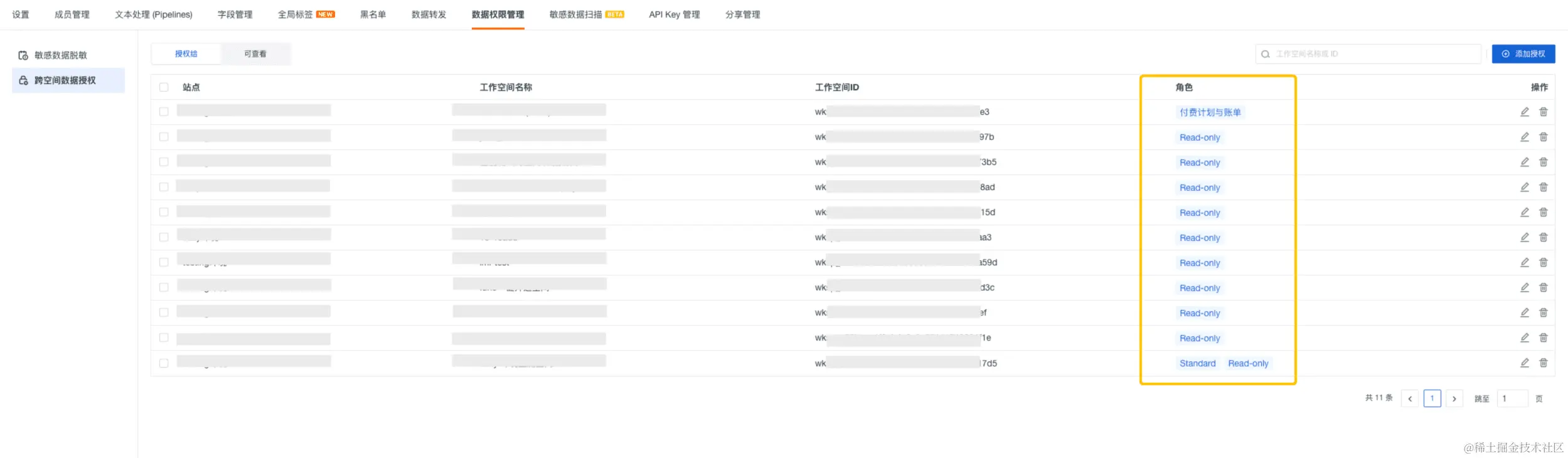 新增角色权限配置,被授权查看的工作空间只能查询对应角色赋予的数据范围。操作示例:详见docs.guance.com/management/…