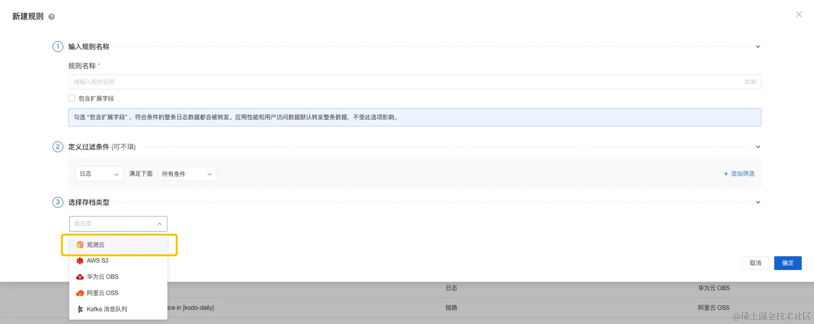 - 新增【观测云】选项,支持将数据保存到观测云的对象存储,计费逻辑按天出账,每天统计存储的压缩后的数据大小,按照每 GB 0.007 元出具对应账单。