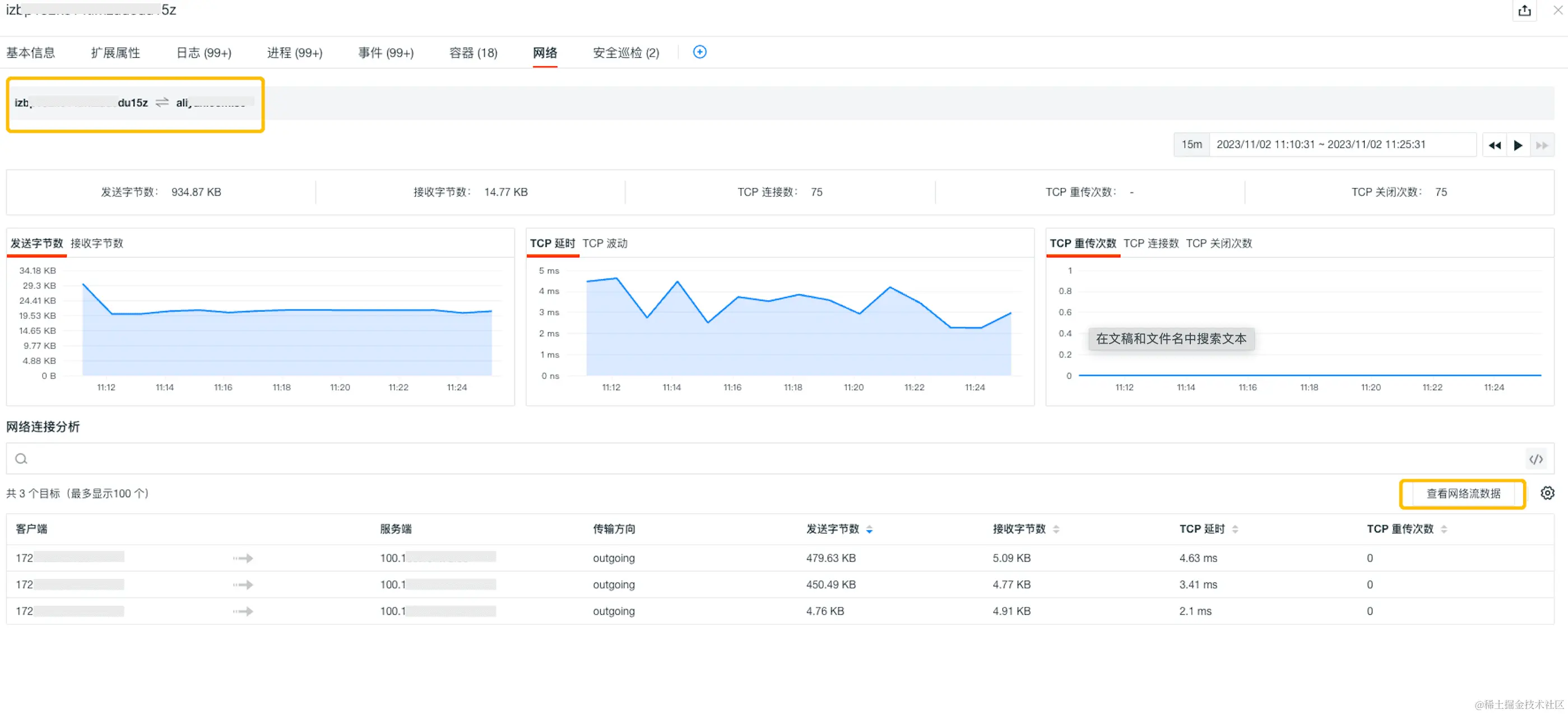 - 优化「总览」模板,新增快捷筛选,用户可以过滤查看网络路径。新增 5 个统计图表,支持分析发送/接收字节数、TCP 重传等网络指标信息。
