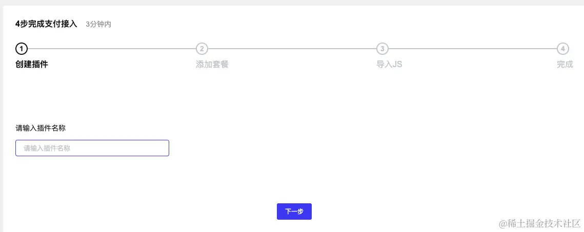 - 进入设置引导页面: 登录后会跳转到新手引导页面,按照步骤一步步创建插件和套餐。