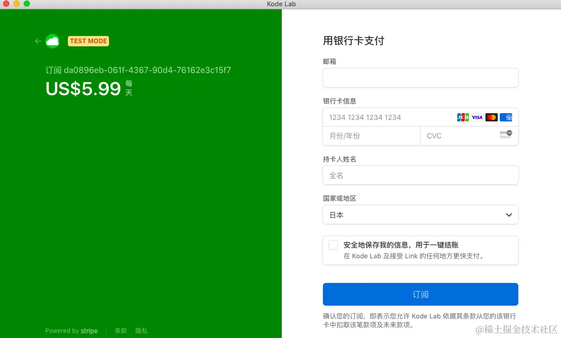 KodePay 提供了测试模式,允许您模拟支付流程而不进行真实的交易。确保在测试期间将KodePay 客户端配置为development模式。
