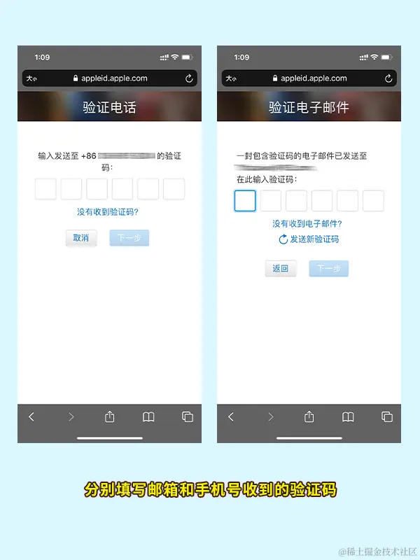 填写邮箱、手机验证码